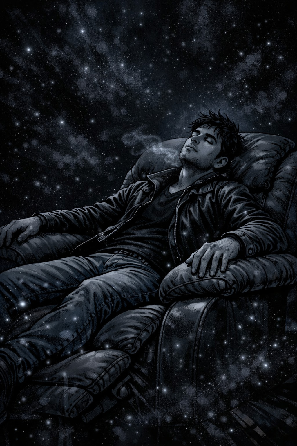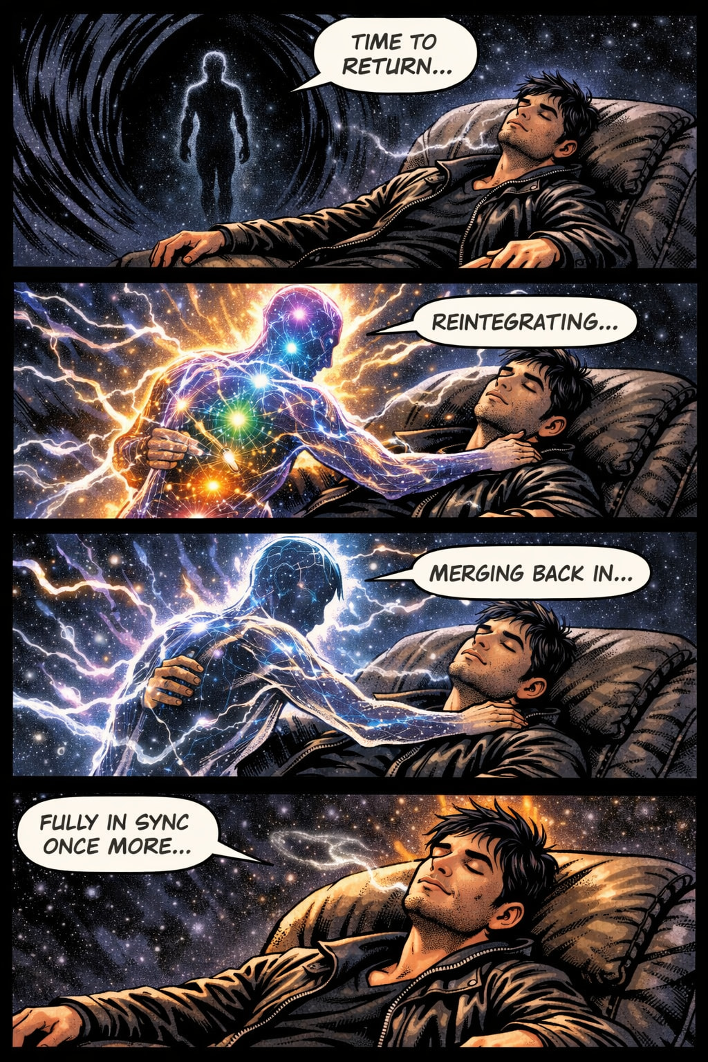 Meanwhile, upon landing at pitch black void stillness. Client is startled (shocked) and jerked from the recliner