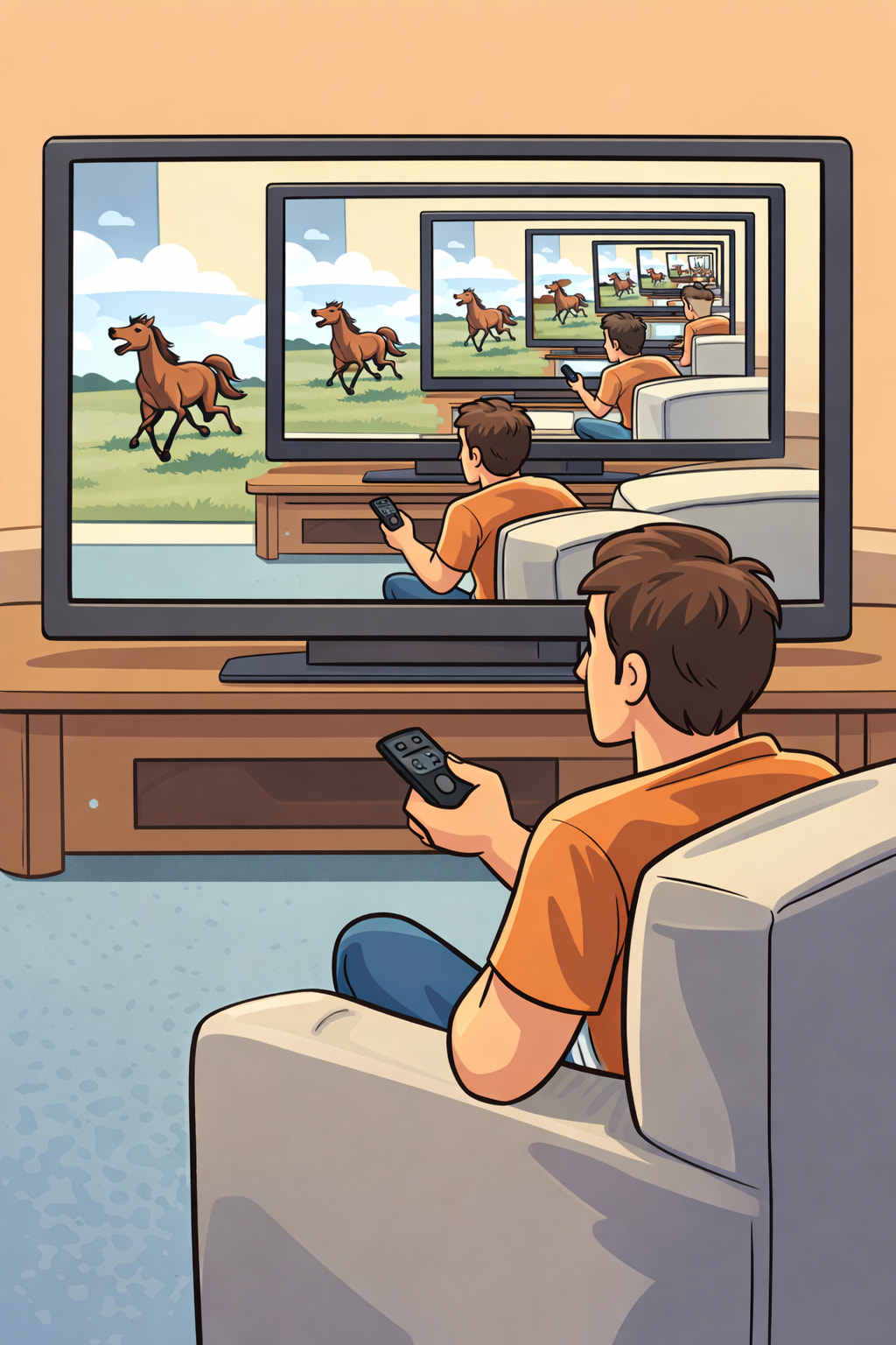 If you look closely, in the above picture , person itself is seeing horses running on a tv and it’s being watched by the same person.