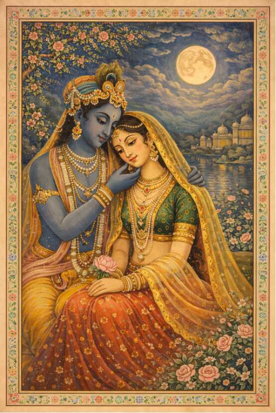 and emerged peacefully; however, having body pain at the same time and feeling fresh also at the same time, she started searching for the Chandravali and Krishna’s drawn Dwarika.