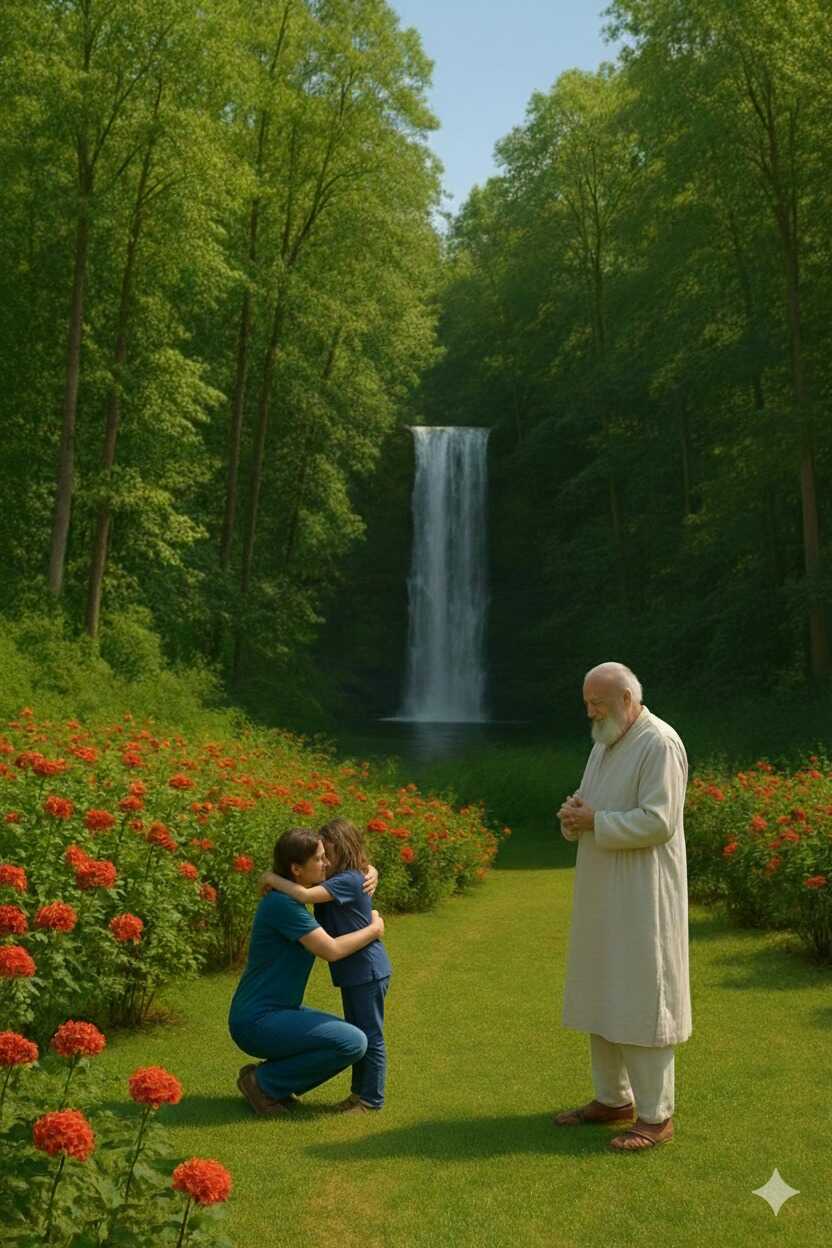 [… Diya could experience a lifetime as a shepherd girl, she saw an old woman as well, but no significance to the problem. Back to the garden again]