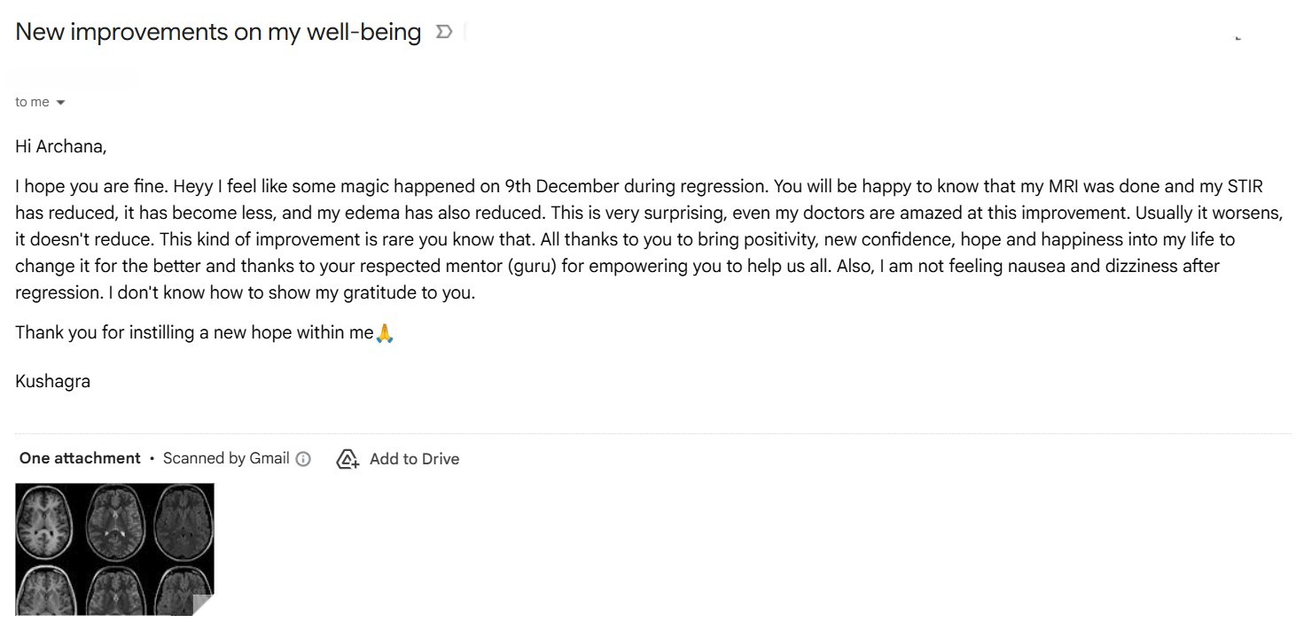 In this case, I tried to integrate all three modalities (visual, auditory, and kinesthetic) simultaneously in my language to ensure continuous engagement with his experience. I tried to handle the sessions with extreme care, emphasising grounding, integration, and a clear distinction between the past life narrative and present life reality. The client was satisfied after the session. He noticed a major shift in his health after the sessions. He was feeling fresh, healthier, and at inner peace. He expressed that he never thought PLRT could help in his case. But he was happy to see the profound and powerful effects on his overall well-being.