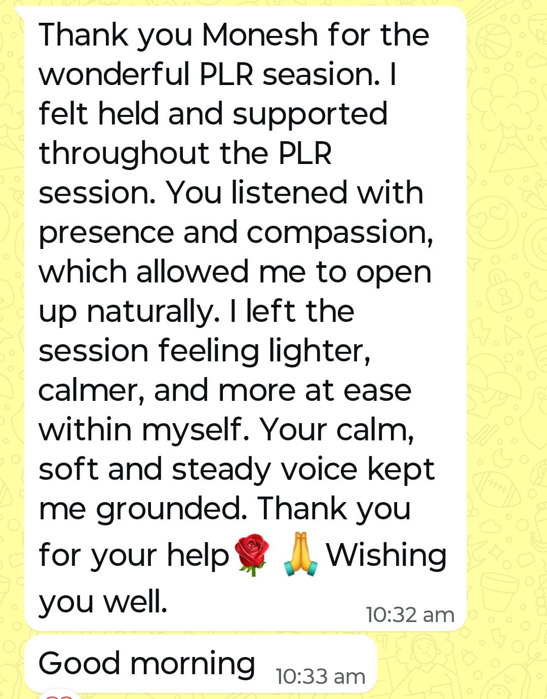 - Post session messages to the client were as under.(WhatsApp screenshots)