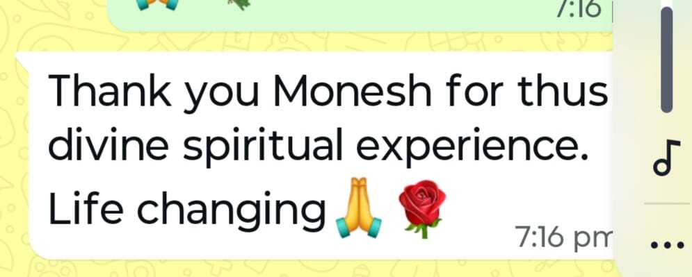 (Blessed to have experienced such a divine presence, and the energy/experience was so over whelming that I too started having tears in my eyes along with the client. If I can put in words – “it dissolves our very existence in name and form”)