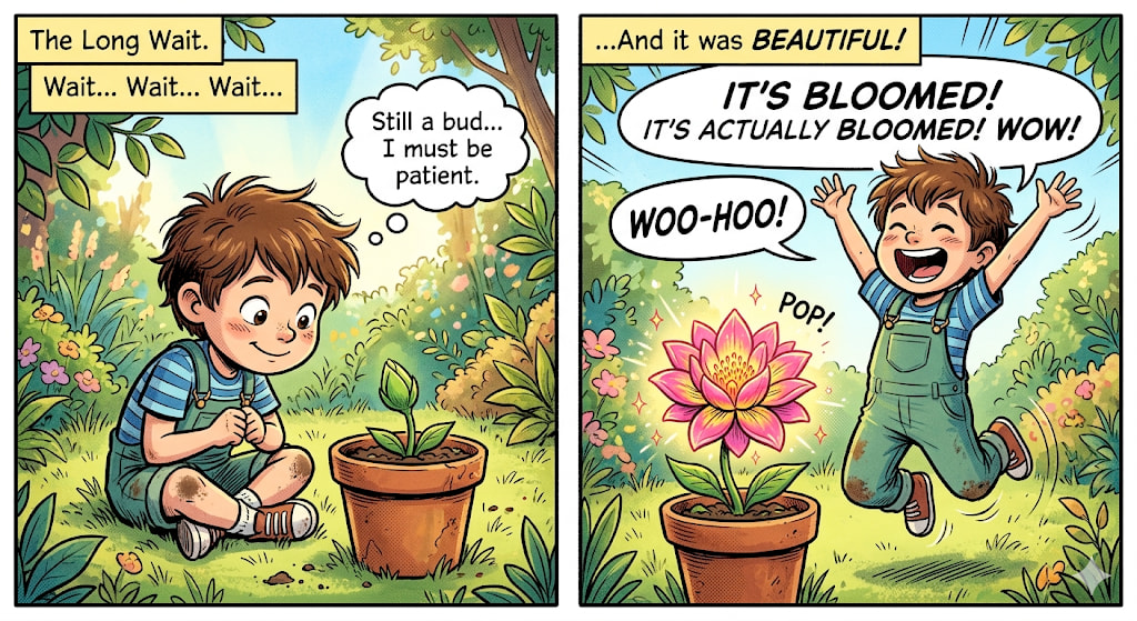 Just like patiently we are watching to see blooming and opening of petals of flower.