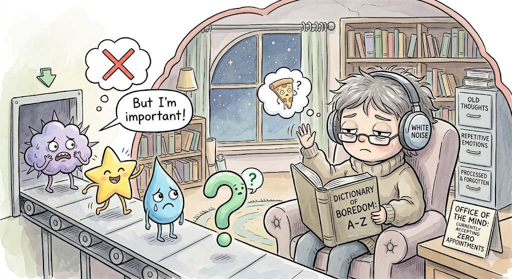 After a period of time, mind itself become disinterest on our routine thoughts and its emotion.